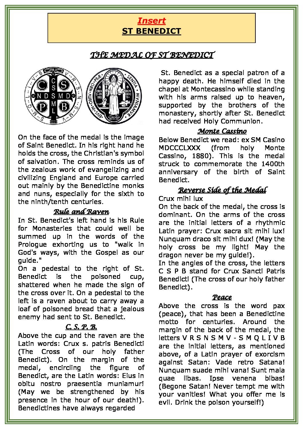 Marius D’Alexandre, stressed the need for spiritual protection if we are to navigate safely through the months and years ahead. In this context, he made particular reference to the Medal of Benedict and the sacramentals validated over centuries by the exorcists. Consulting the available literature on this subject, we found numerous astonishing reports wherein this medal was used: